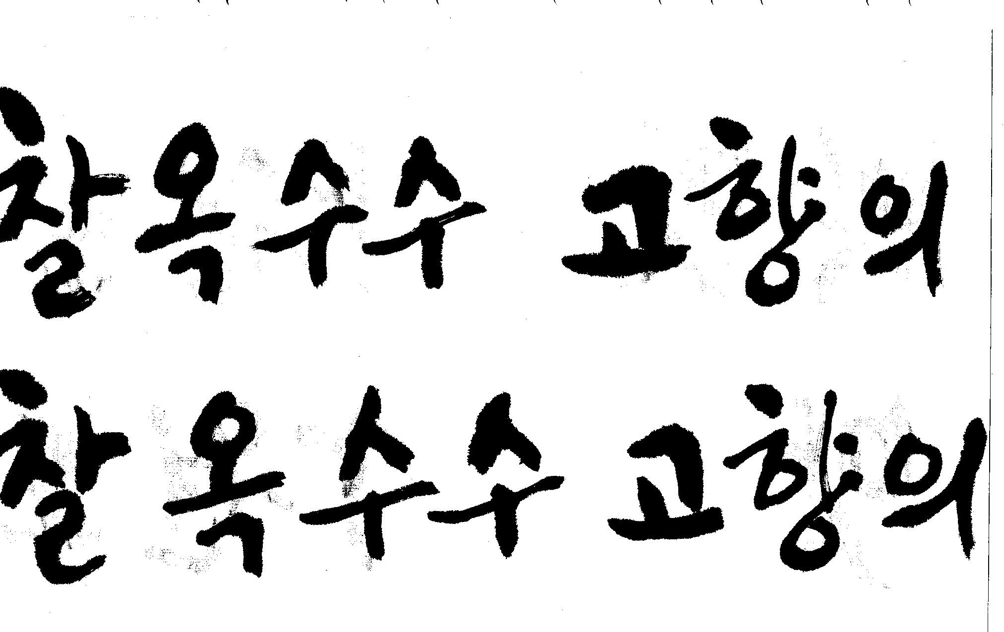 캘리고수님.. 캘리 부탁드립니다. 김철호 일반 1 10618 2008.10.31 15:44 > > 강원도 > 찰옥수수 > 고향의 맛 > > 이상의 문구 입니다. > 캘리 고수님들 시간되시면 도움 부탁드립니다.. > 유용하게 쓰시길 , 스캔이 깨끗하지 못해서 수고 좀 하셔야 겠네요.. "맛"이 라는 글자가 잘 않나와서 따로 올립니다.